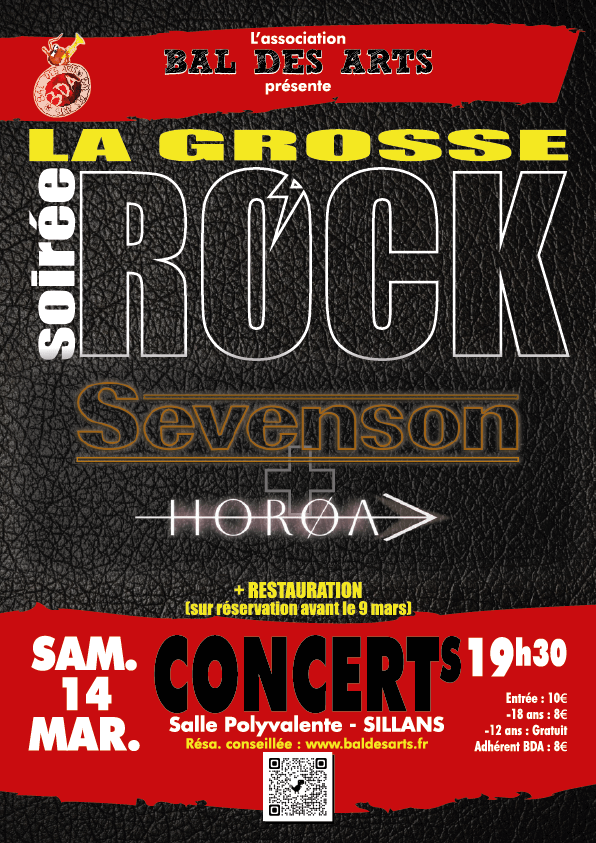 Proposée par le Bal des Arts, La grosse soirée rock avec les groupes Sevenson et Horoa Restauration sur réservation