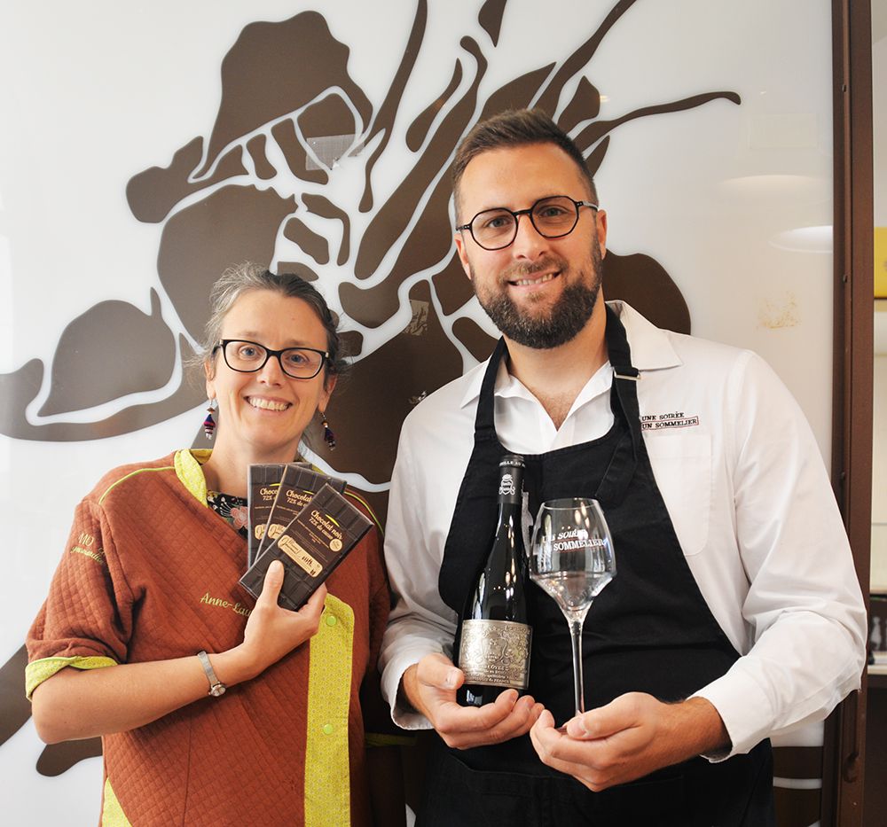 Proposé par la Maison Jouvenal Yohan Saggiorato, sommelier et caviste, féru de vin et de découvertes gustatives, s’allie à Anne-Laure Jouvenal, passionnée de chocolat et de mélanges gastronomiques inattendus, pour vous proposer un atelier Vin & Chocolat.