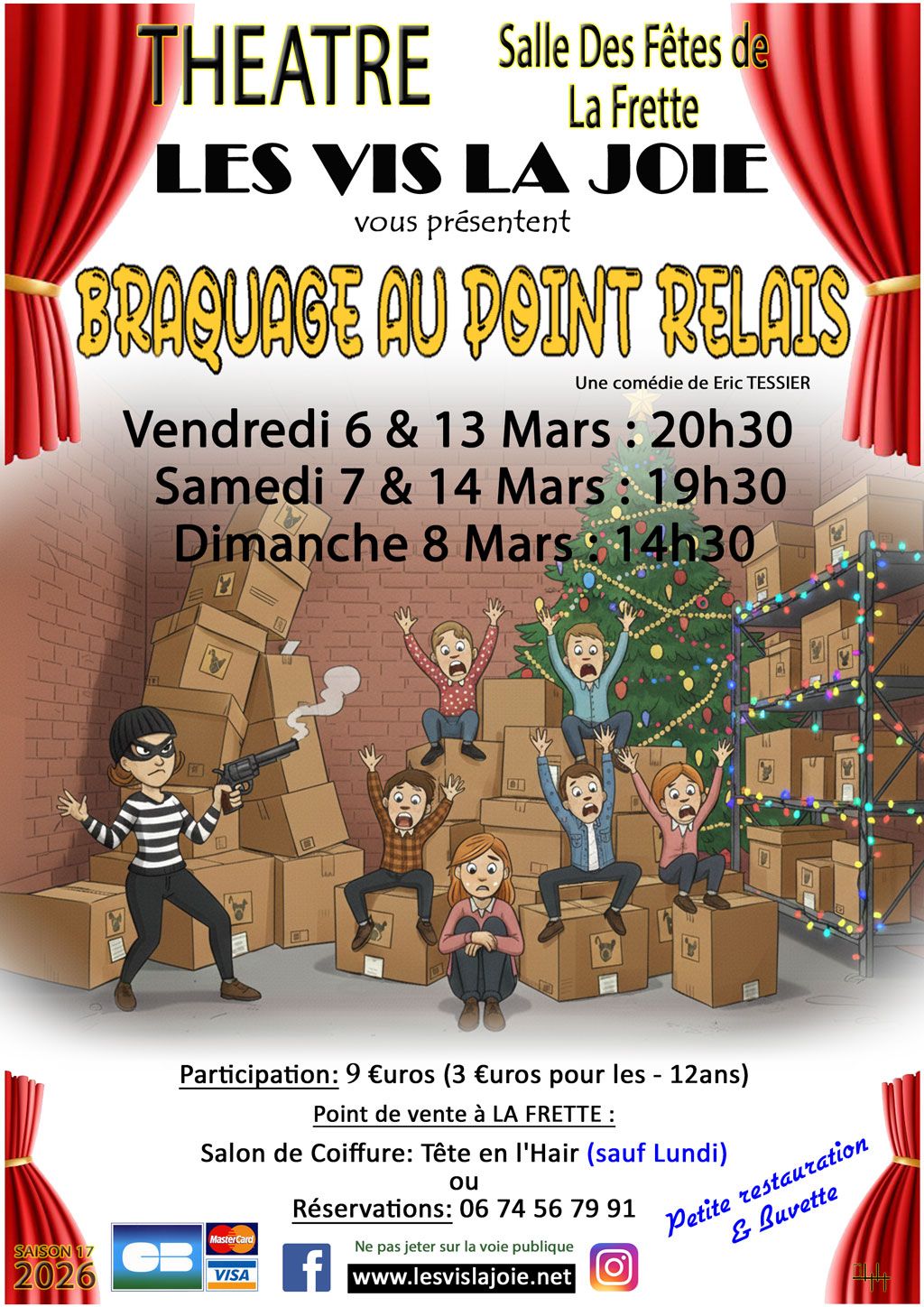 Nouvelles représentations par la compagnie frettoise "Les vis la joie", une comédie d'Eric TESSIER. Buvette et petite restauration.
