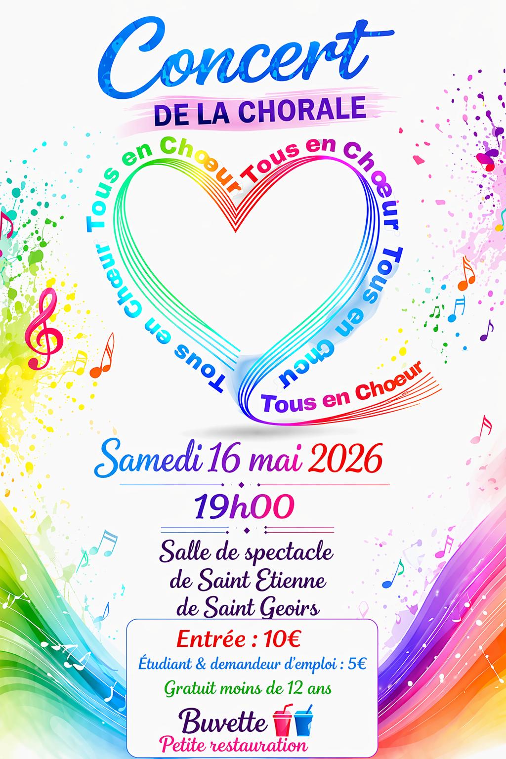 Concert annuel de la chorale "Tous en chœur" 75 choristes Cheffe de chœur : Amandine Zoz Pianiste : Vincent Ginon