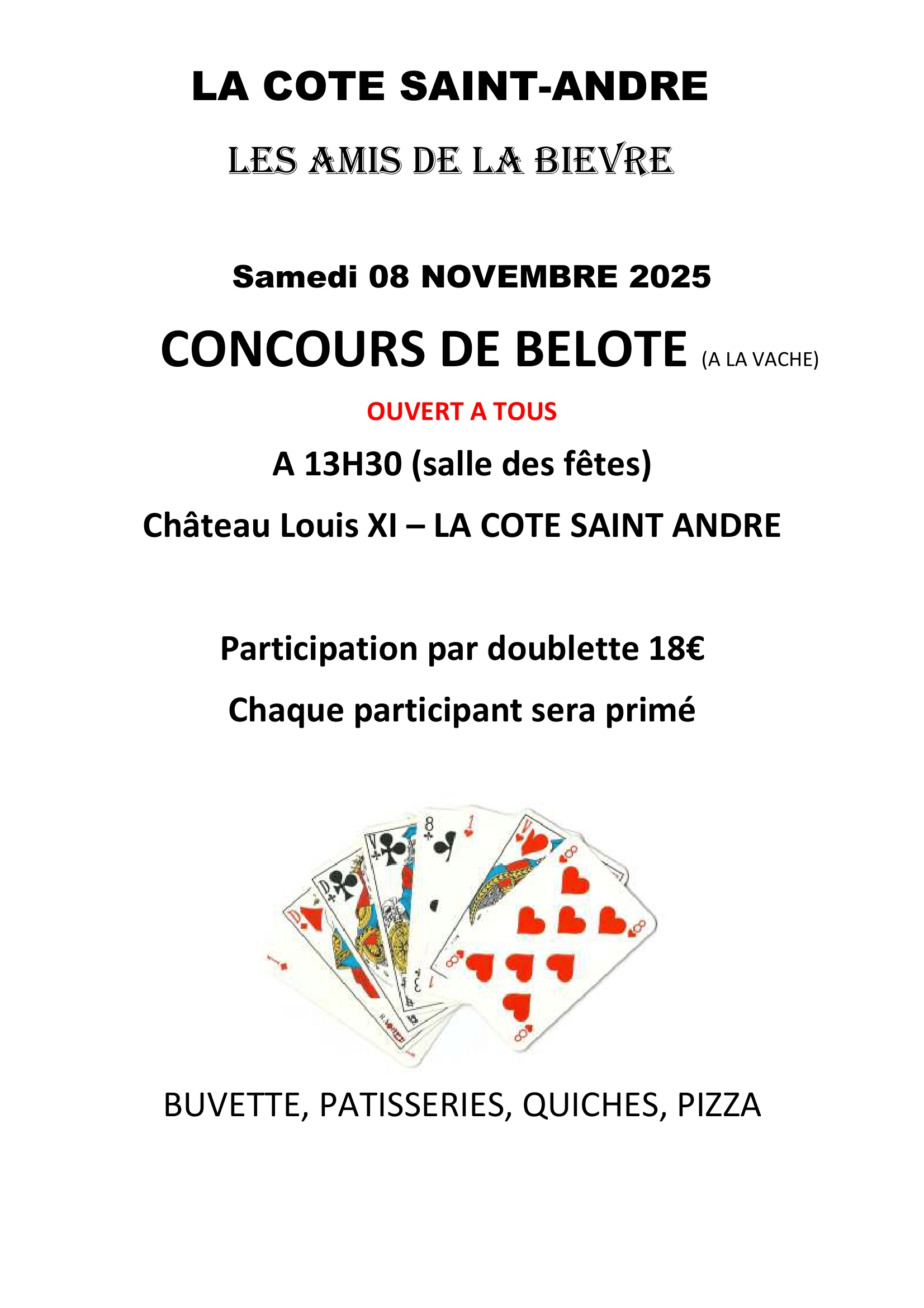 Proposé par les Amis de la Bièvre Concours à la vache, ouvert à tous Chaque participant sera primé Buvette, pâtisseries, quiches et pizza