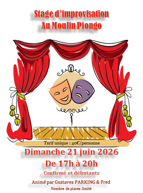 Stage d'improvisation animé par Gustave Parking et Fred. Public débutant et confirmé. Nombre de places limitées, sur inscription au 06 83 28 52 20.