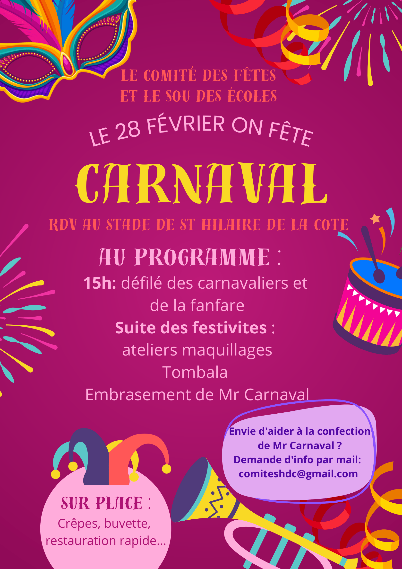 Envie d'aider à la confection de M CARANVAL? envoyer votre mail sur comiteshdc@gmail.com