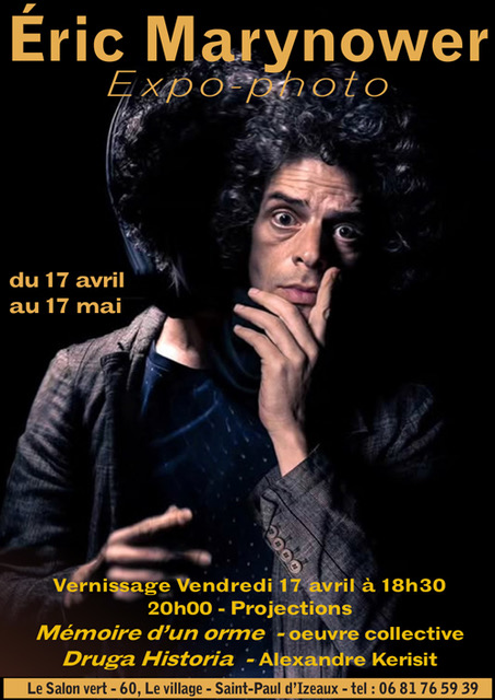 Proposée par le salon vert Vernissage des photos improbables d’Éric Marynower, suivi à 20h de la projection de Mémoire d’un Orme, Oeuvre collective puis de Druga Historia, de Alexandre Kerisit. Réservation conseillée