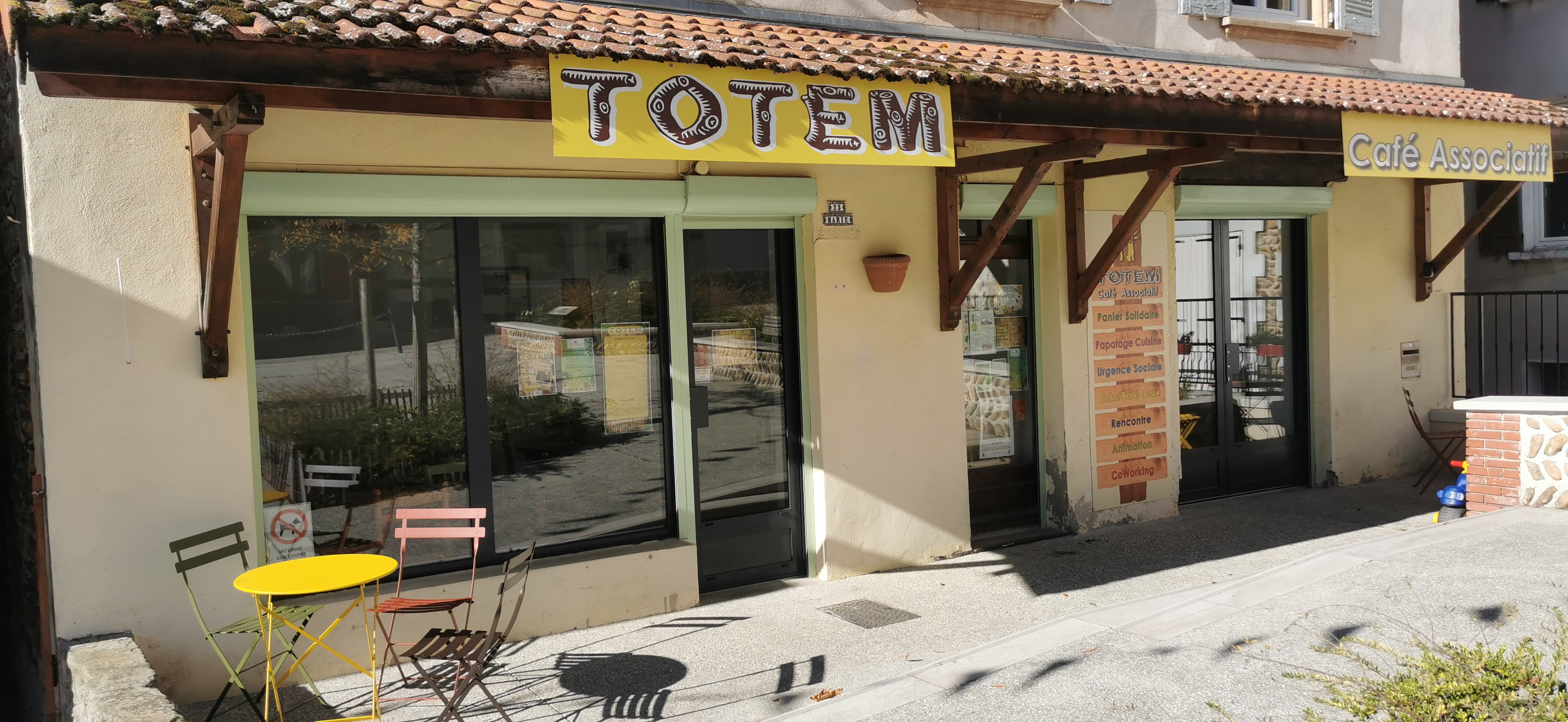 Nouveau café associatif TOTEM, ouvert depuis le 1er octobre 2025. Boissons chaudes et froides, gourmandises salées sucrées, pas d'alcool. Animations prévues tout au long de l'année : trocs de plantes - expositions - Jeux Echecs/jeux de société...
