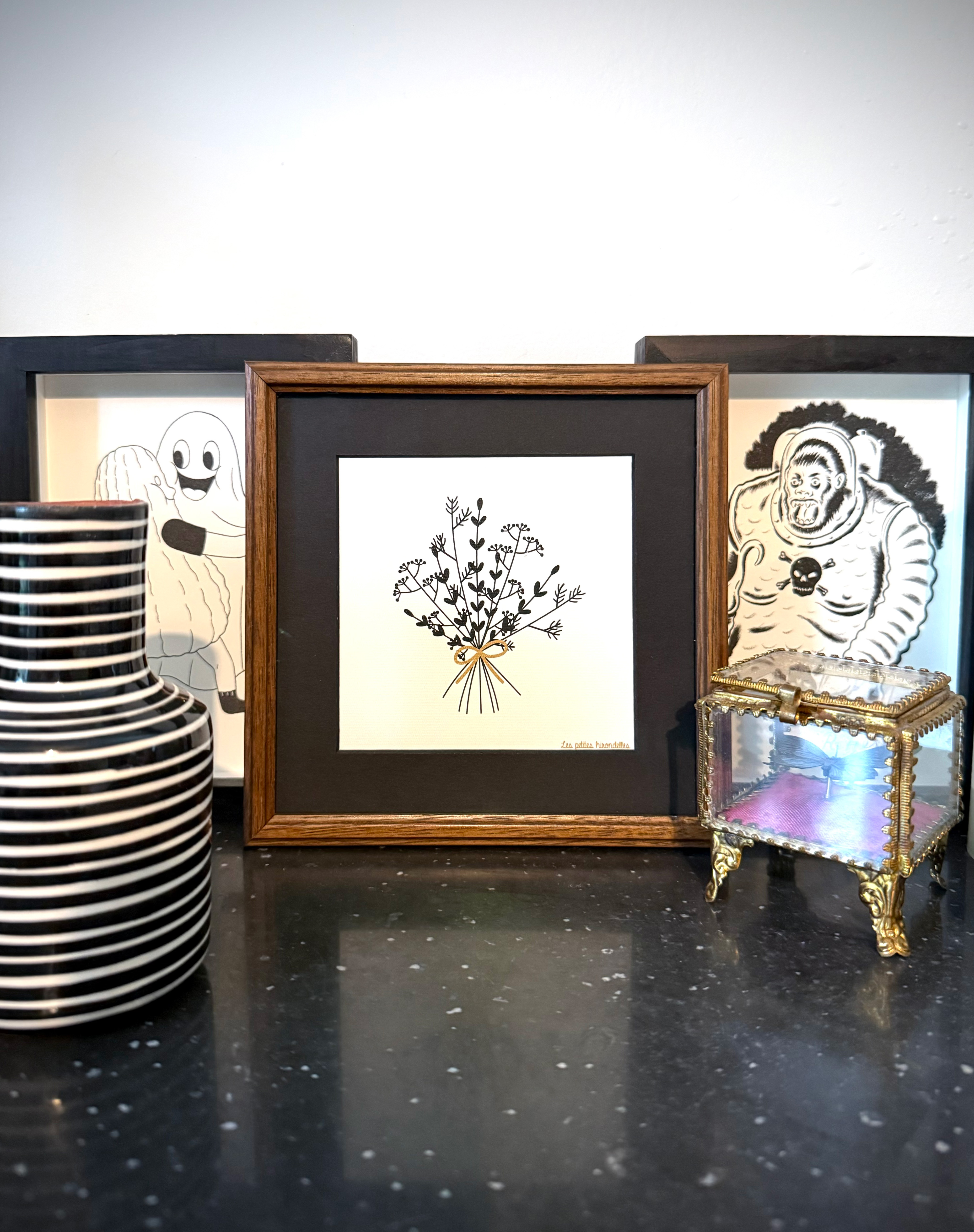 Passionné par les arts graphiques autour de la musique et du tatouage, je me suis rapidement intéressé à la revalorisation d’anciens cadres pour sublimer les art prints que je collectionnais depuis des années.