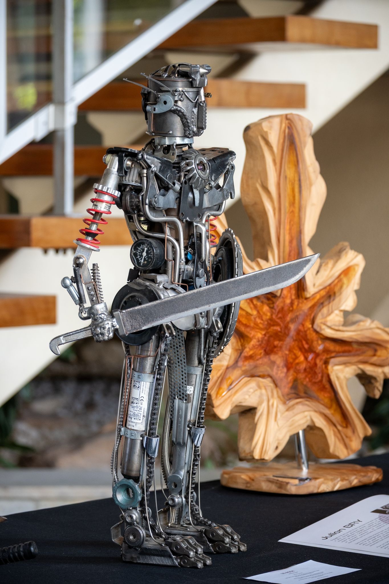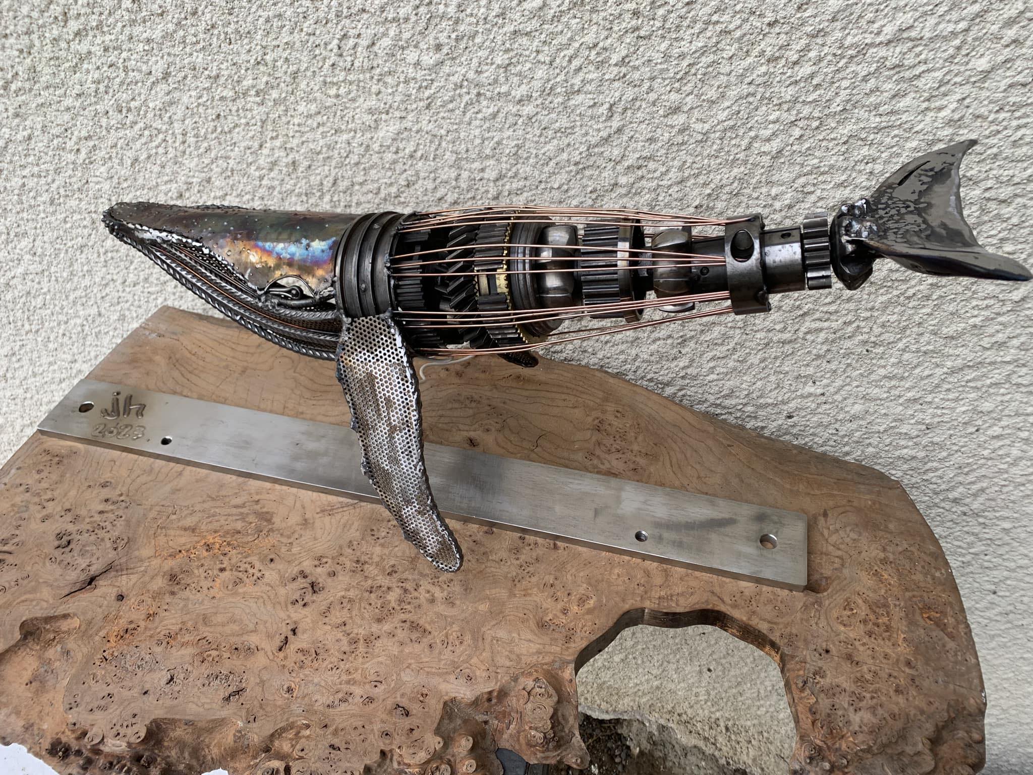 Dans mon atelier, je crée des sculptures uniques en assemblant et façonnant des métaux, tous issus du recyclage.
