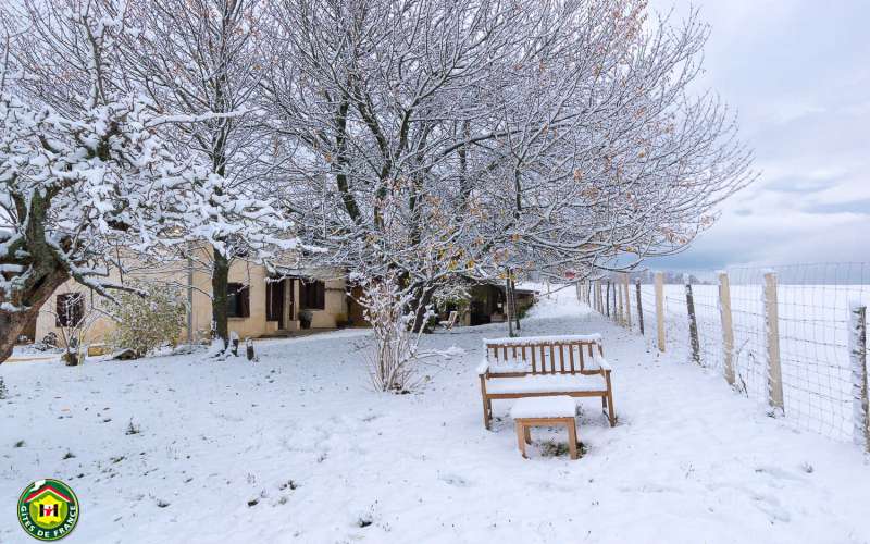 La maison est nichée sur un côteau exposé au Sud, surplombant la plaine de la Bièvre, avec vue à 180°.