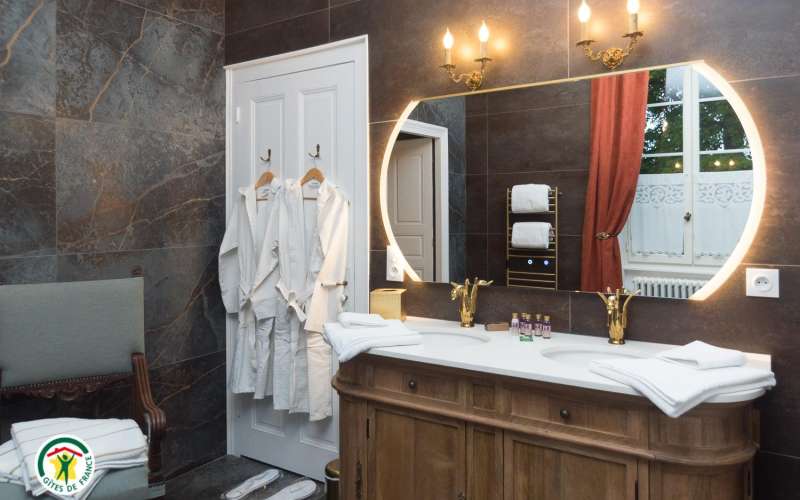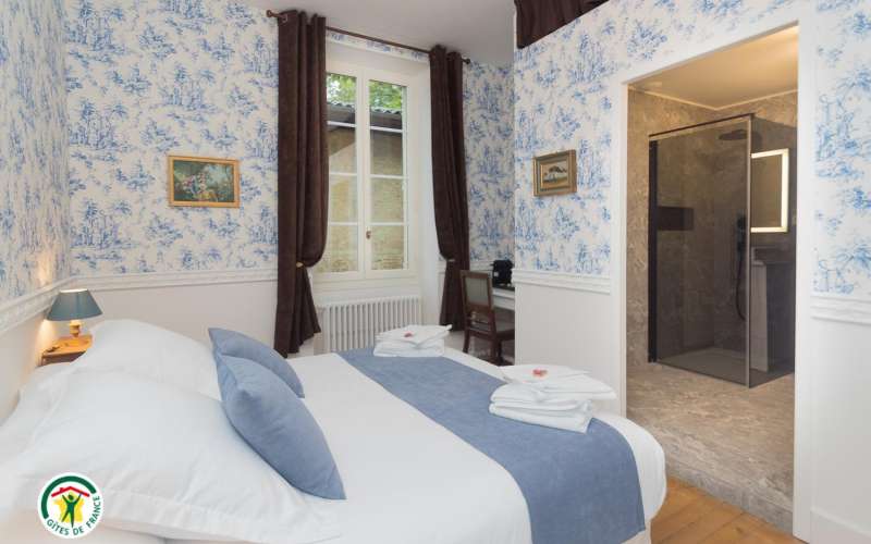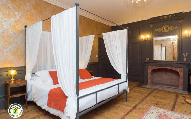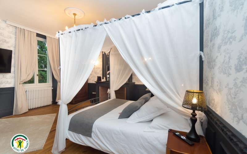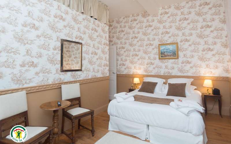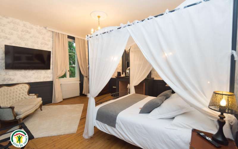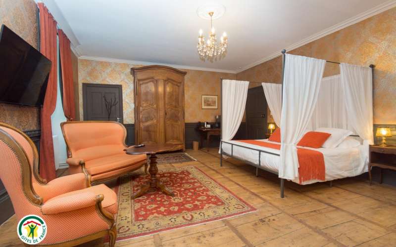 Les chambres sont aménagées au 1er étage : 2 suites avec lit à baldaquin, salon, réfrigérateur coffre-fort, TV, Wi-Fi (sanitaires privatifs), 1 suite familiale aménagée pour 4 personnes réfrigérateur coffre-fort, TV, Wi-Fi (sanitaires privatifs).