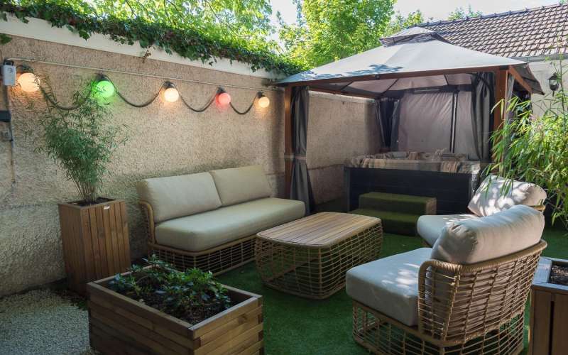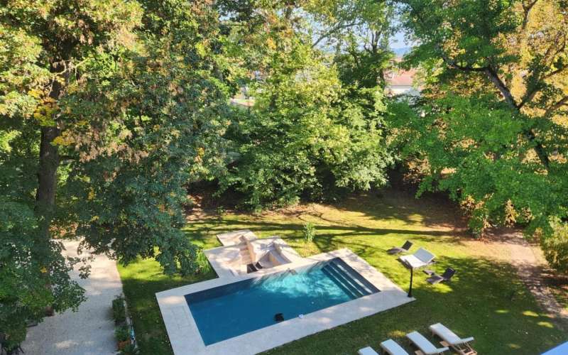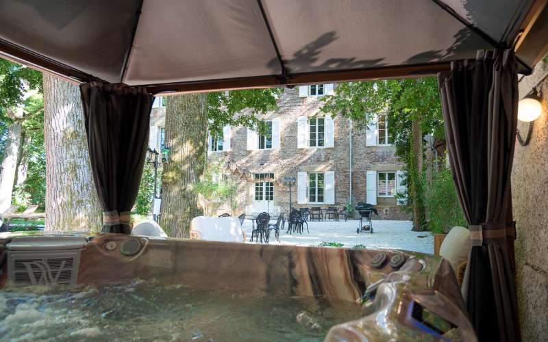 Grand parc arboré clos, avec terrasse, salon de jardin, piscine 10x4, bar-braséro, salle de remise en forme (tapis de course, rameur, power-plate, banc de musculation, fauteuil de relaxation), terrain de boules ombragé & parking clos. En supplément Spa 5 places sur réservation.