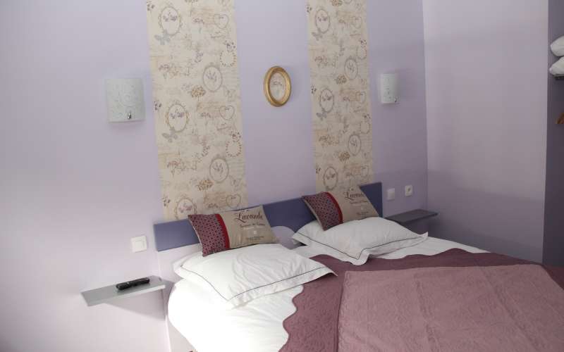 Chambre Lavande (lit 160 + 1 lit 90) :75€ (1 lit), 85€ (2 lits).