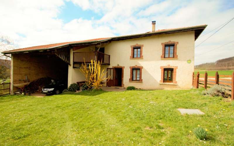 Maison Dauphinoise ent. rénovée, au coeur des Chambarans, comprenant au rez de chaussée, un grand séjour-cuisine avec cheminée, salon (biblio.), salle de bain, wc.