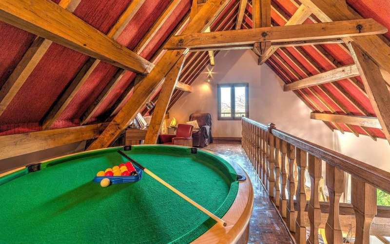 Chambre1 (1 lit 2 pers), salle d'eau, wc, garage. Au 1er: mezzanine, piano, petit salon, billard rond,