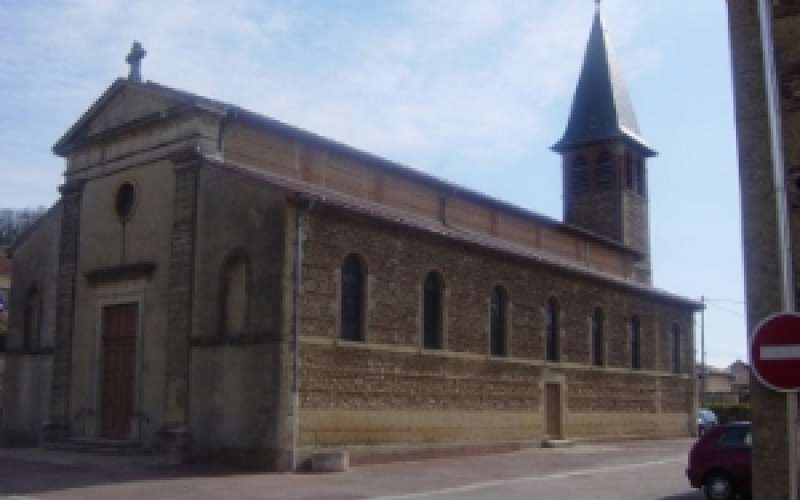 Reconstruite dès 1840, l'église est un édifice à trois nefs au clocher accolé à l'axe du chœur; bâtie en maçonnerie de galets alternés de lits de tuiles ou briques, dont la façade emprunte au style néo-classique.