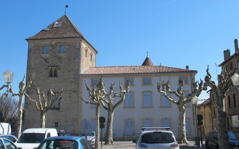 Cet ensemble imposant de bâtiments plusieurs fois remaniés est situé à l'entrée nord de la ville, près de l’emplacement de l’ancienne Porte Neuve. Ils se composent d'une tour de plan carré, s'élevant sur quatre niveaux, et d'un édifice en L au sud-ouest, dont l’origine remonte au moins au XVIIe siècle, reconfiguré au XIXe. La tour est de construction homogène ; elle paraît bâtie d’un seul jet. Les transformations réalisées depuis sa construction sont peu nombreuses. Le changement le plus notable est à placer vers la fin du XVe siècle : le plafond du premier étage est alors rabaissé et de nouvelles fenêtres, plus amples sont ménagées dans les murs est et ouest. Ces travaux signent l’abandon du second étage, le plus noble jusqu’alors, qui a conservé en place des aménagements inutilisés, désormais peu accessibles (coussièges, latrines, placard complexe en trois parties) ; seule la cheminée a été détruite. La baie géminée visible depuis la Place appartient au premier état ; la grande croisée à larmier mouluré date des transformations de la fin du XVe. Le niveau de combles conserve des ouvertures rappelant les hourds, comme également visibles à la tour des Chiens à Corenc.