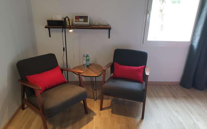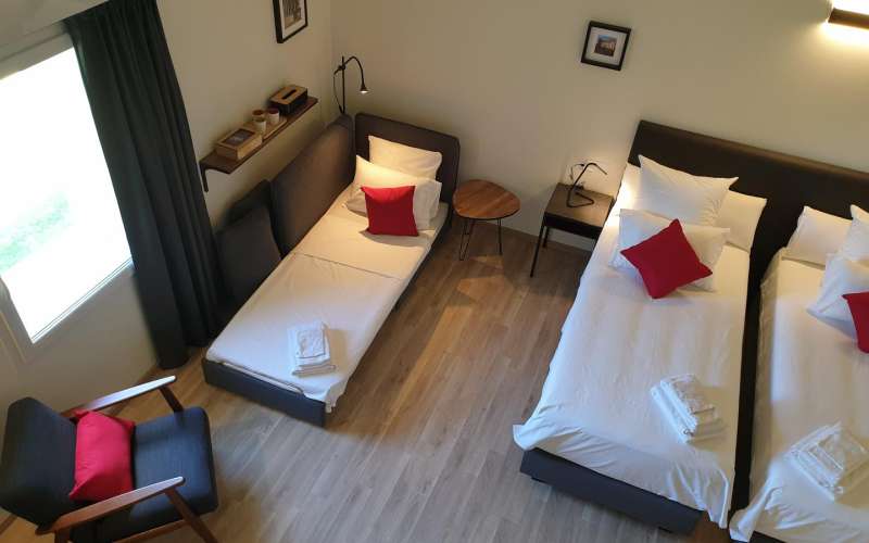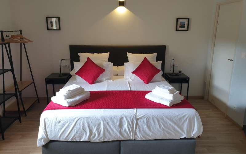 Nos quatre chambres spacieuses disposent de leur propre salle de bain et toilette. Profitez du calme, d’un bon dîner et d’un bon vin.