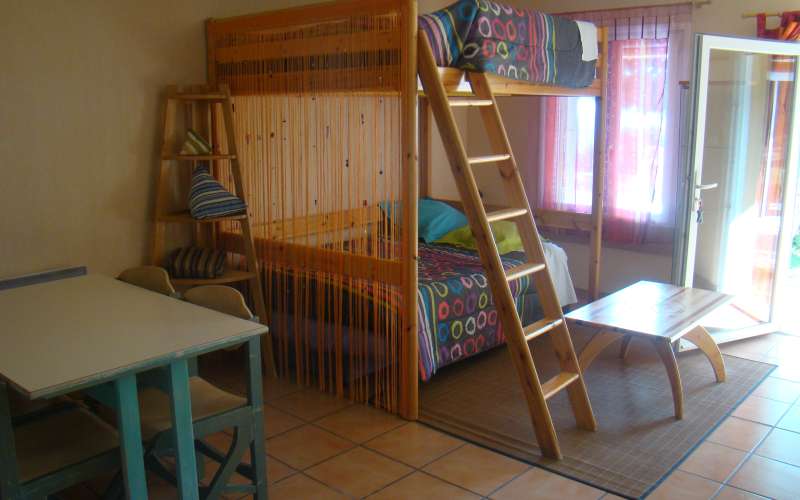 Au cœur des Chambaran, dans la vallée de la Galaure, dans un quartier au calme, cadre verdoyant, vue très dégagée, studio meublé avec coin cuisine, plaque chauffante, four micro-ondes, lavabos, vaisselle, cabine douche lit en 120 et lit mezzanine en 140.