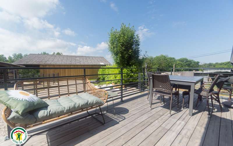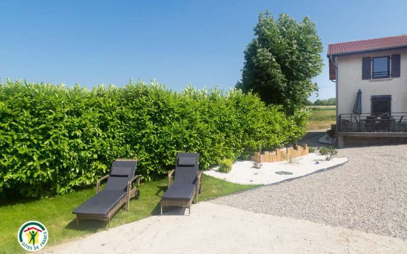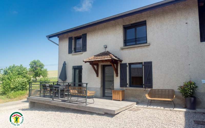 La campagne comme on l'aime : vallonnée et boisée avec en toile de fond les parc Naturels du Vercors et de Chartreuse. Grand volumes : 119m² pour 6 personnes.