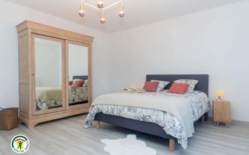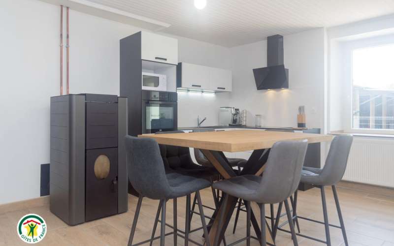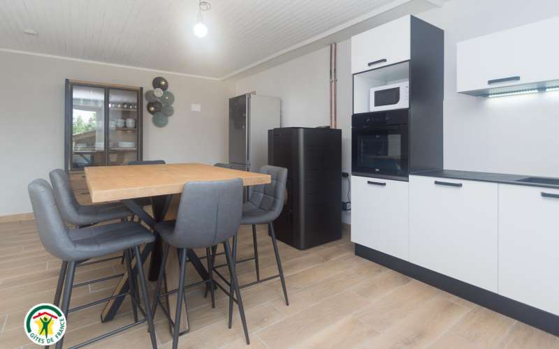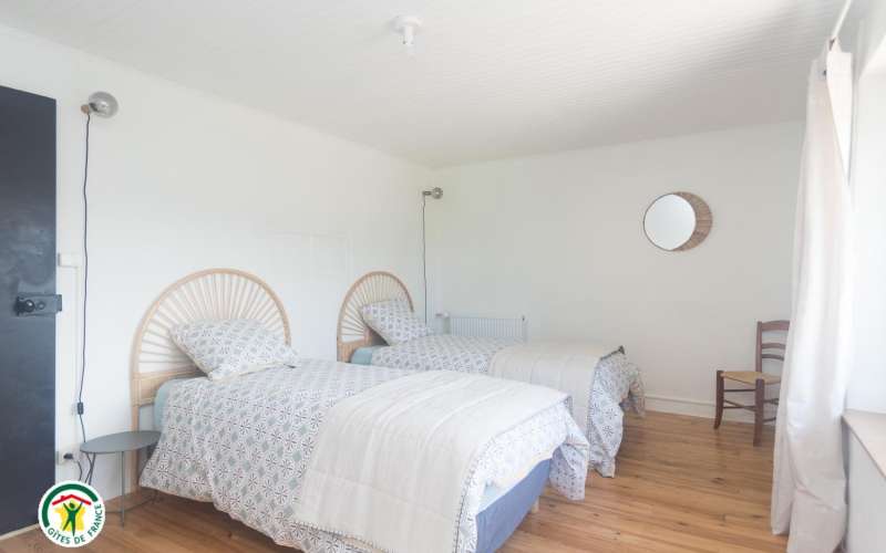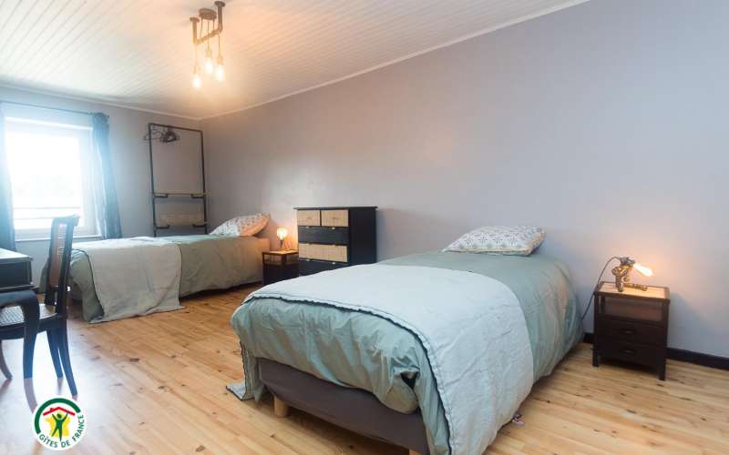 A l'étage coin jeu pour les enfants (livres et jeux de société), Chambre 2 et 3 (2 lits 90x200 par chambre). Chauffage centrale par poêle granulés bois situé dans le séjour. Lave-linge. Garage à disposition dans l'ancienne grange, parking et cour close.