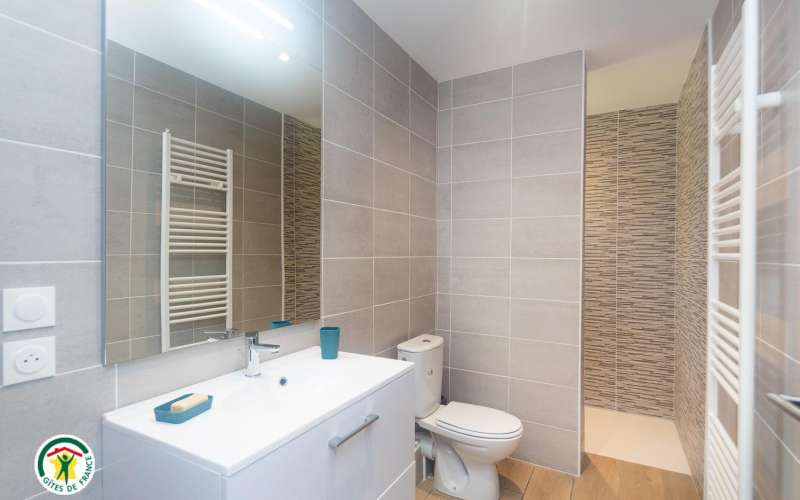 Au rez-de-chaussée : belle terrasse en bois 16m², séjour-cuisine équipée : lave-vaisselle, four, micro-ondes. Buanderie : lave-linge, wc, salon TV, WIFI, babyfoot. Chambre 1 (lit 2 personnes 160x200), salle d'eau, wc.