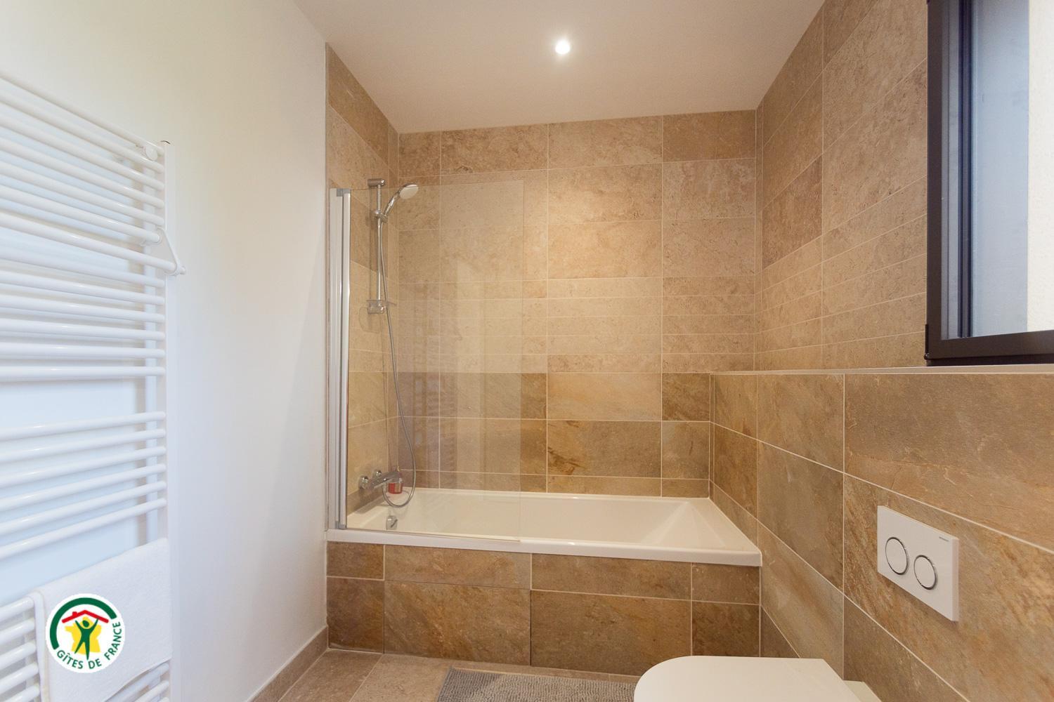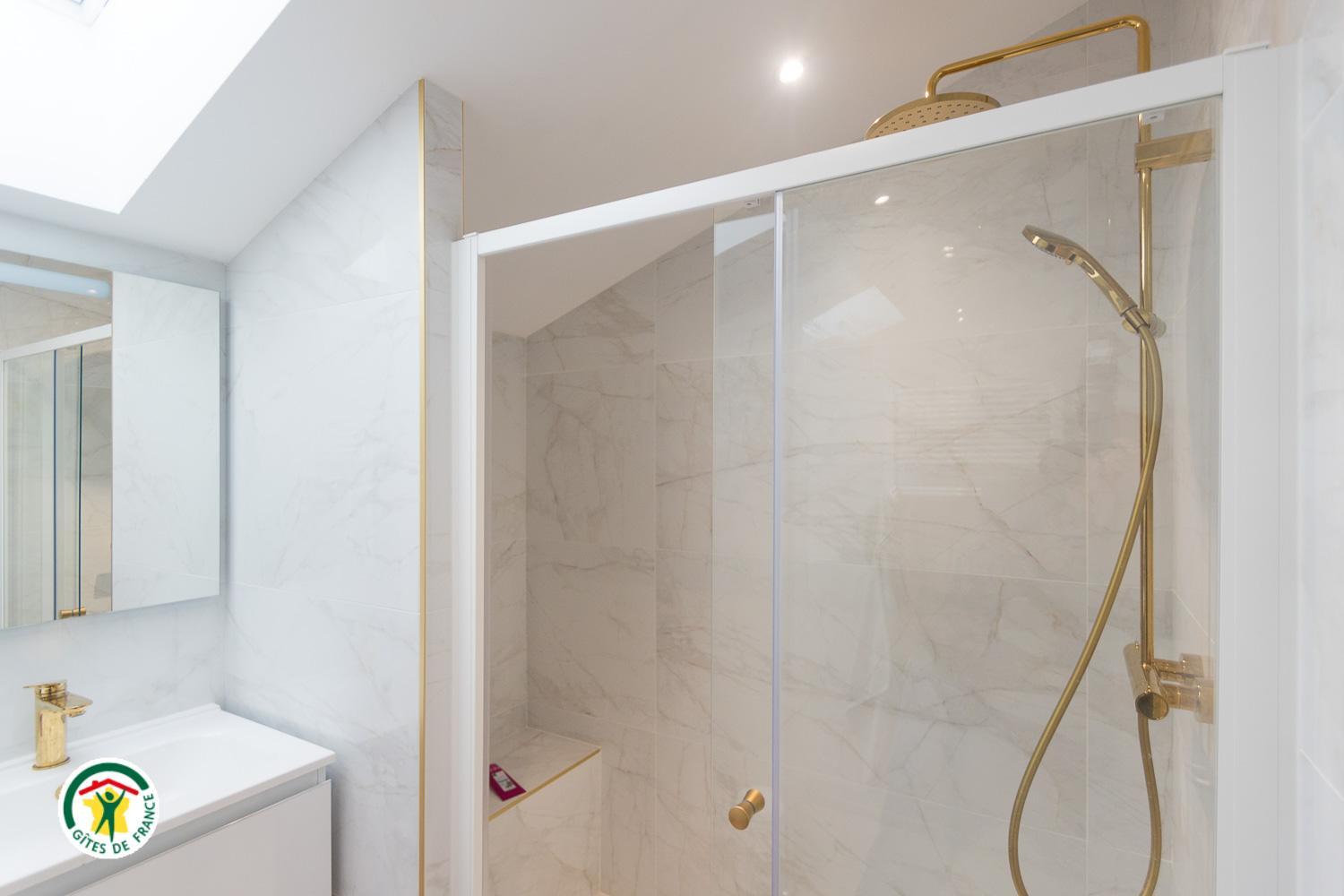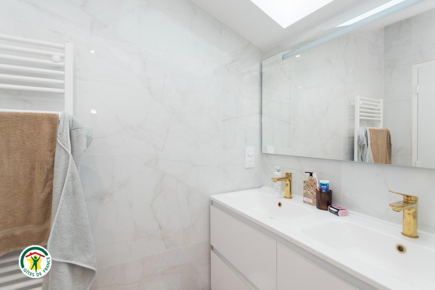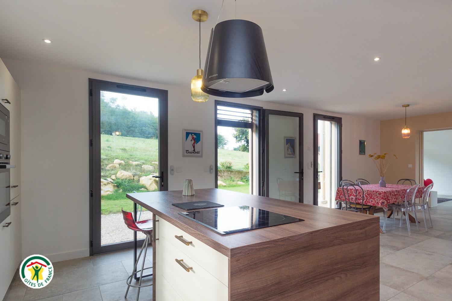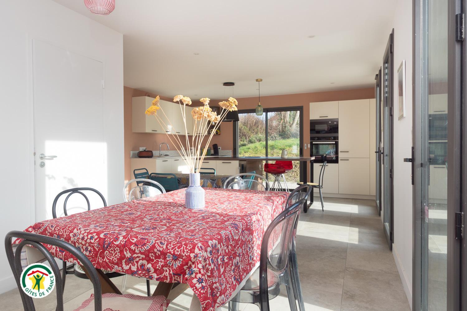Au rez-de chaussée : salon avec TV et WiFi, séjour-cuisine, grande et belle cuisine toute équipée avec four, hotte, plaque induction, cafetière Senséo, congélateur, grille pain, pierrade... Suite avec 2 lits 90x200 (salle d'eau & wc privatifs), wc.