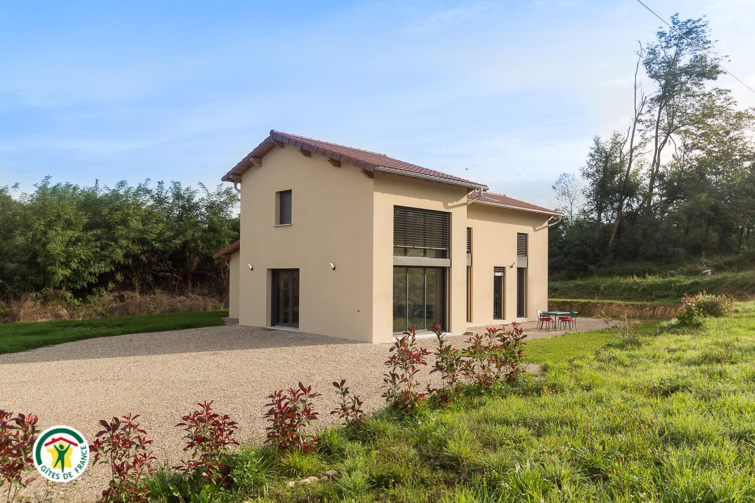 Grande maison d'architecte, lumineuse et très bien équipée pour 6. Vaste jardin privatif. A proximité : Forêt et parc naturel des Chambarans, Palais Idéal du facteur Cheval, centres aquatiques au cœur des terres de... Mr BERLIOZ !!