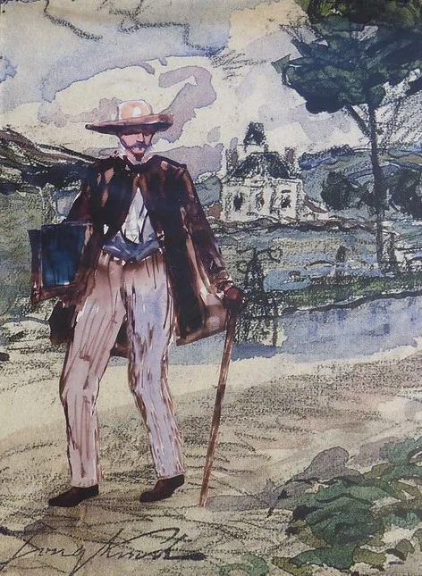 Au fil de ses déambulations dans le bourg et la campagne environnante, l’artiste dessine et peint de nombreuses vues. Il fréquente les cafés, se lie d’amitié avec les humbles du village, les paysans et les enfants qui le surnomment le « Père Jonquille ».