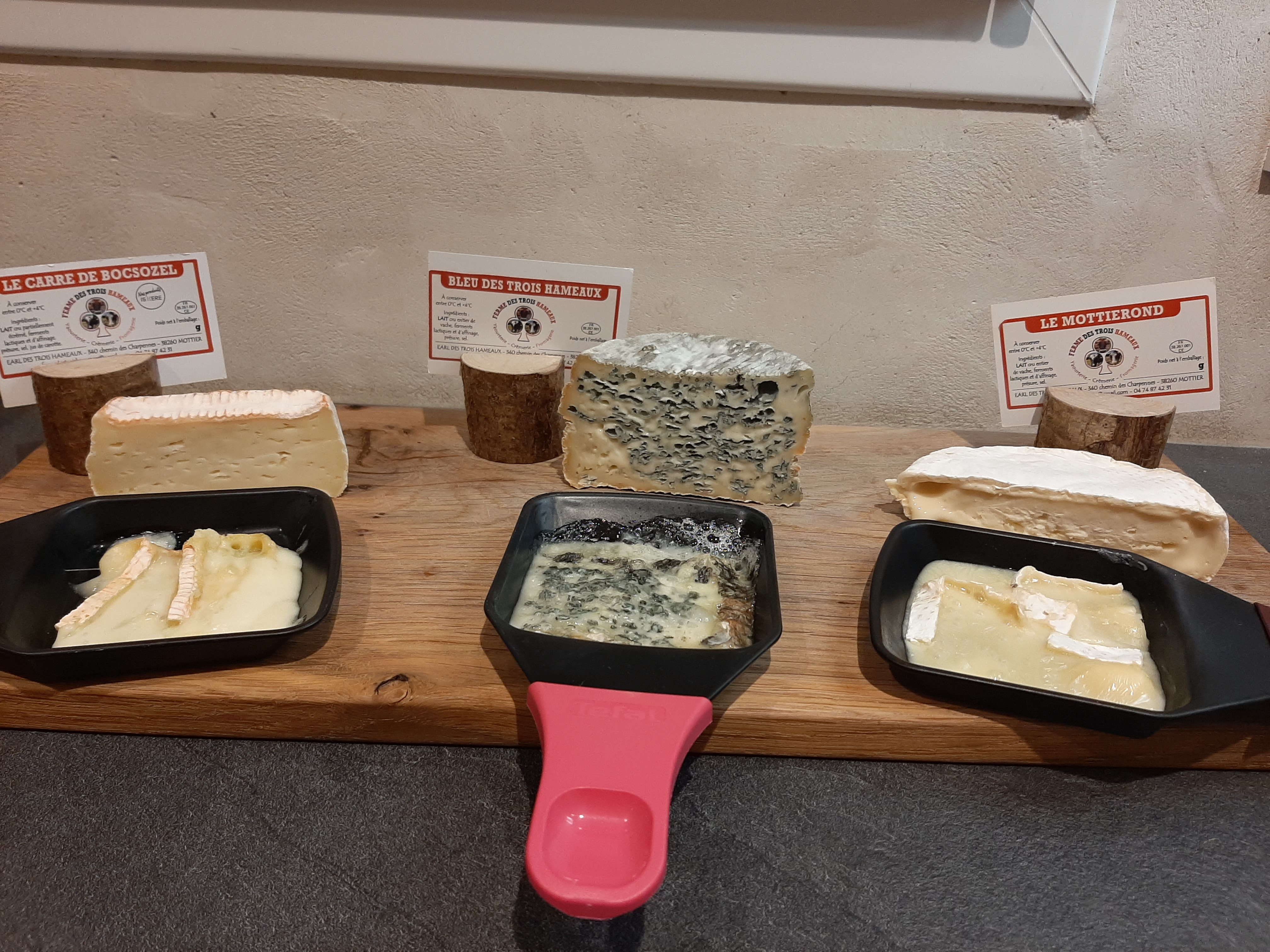 Venez découvrir nos produits laitiers fermiers : beurre doux/demi sel, crème crue, skyr (riche en protéine et calcium), yaourts, fromage blanc battu, notre Mottierond (camembert), notre Bleu des Trois Hameaux et notre dernier Le Carré de Bocsozel (tomme).