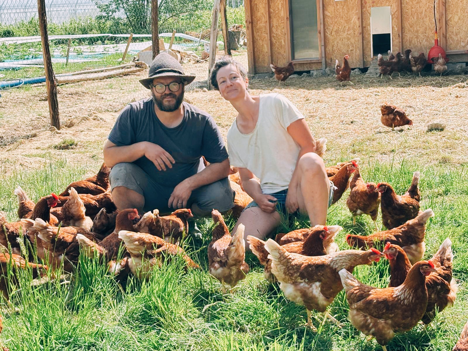 Nous sommes Olivier et Anna, maraîchers bio cultivant 2 hectares à Roybon.