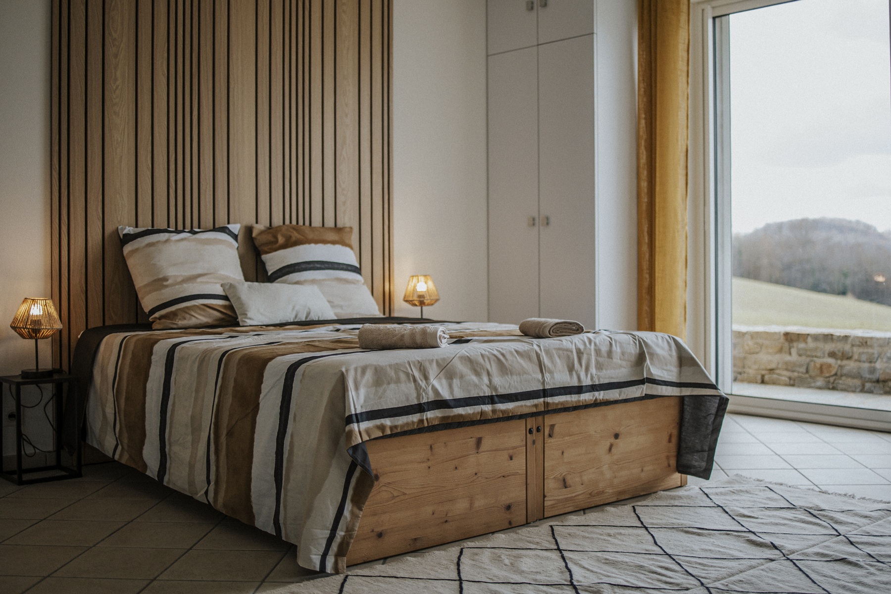1 chambre au rez-de-chaussée avec accès direct sur la terrasse et magnifiques coucher de soleil sur le Mont Pilat.